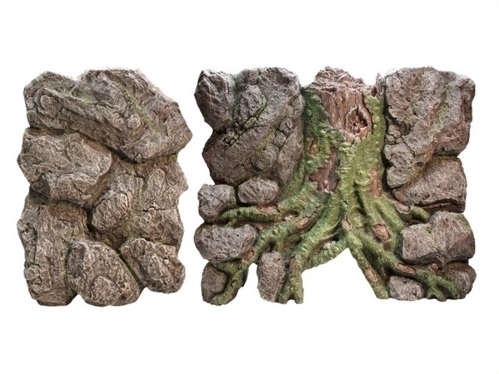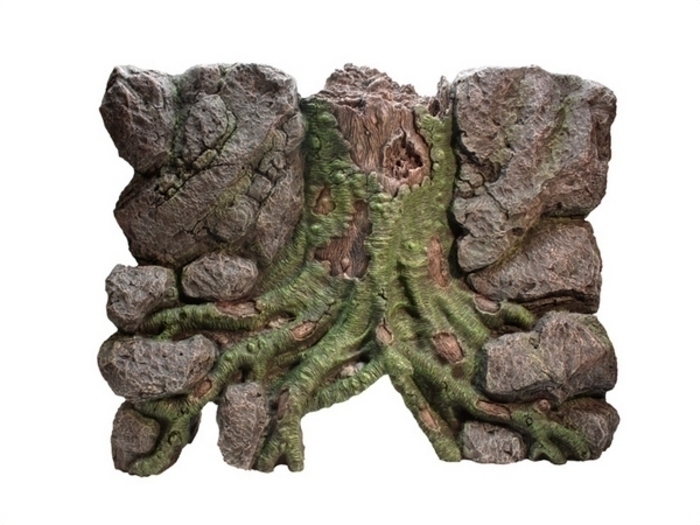 2-teilige Dekorückwand aus Polyester in Felsoptik mit aufgesetzter Wurzelnachbildung