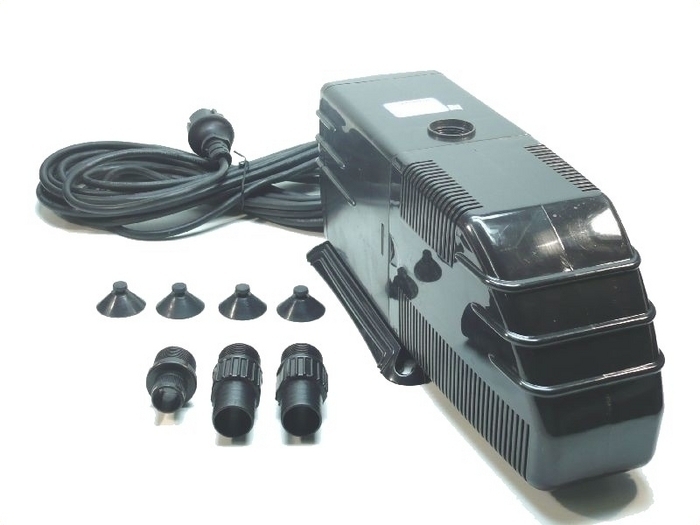 Ausgestattet mit 10m-Gummikabel sind diese Pumpen eigentlich für die Verwendung im Gartenteich als Umwälzpumpen oder Springbrunnenpumpen konzipiert. Selbstverständlich können sie jedoch auch im Bereich der Aquaristik immer dann eingesetzt werden wenn hohe Förderleistung kombiniert mit gr. Förderhöhe gefragt ist. P-2000 / P-2500 Förderleistungen von 770l/h und 1250l/h bei einer Förderhöhe von 2,0m bzw. 2,4m. Nur untergetaucht einsetzbar. Ausgerüstet mit Stahlachse werden diese nicht für den Einsatz im Seewasser empfohlen. P-3500 / P-4500 Förderleistungen von 3500l/h und 4500/h bei einer Förderhöhe von 2,9m bzw. 3,9m. Nur untergetaucht einsetzbar. Ausgerüstet mit Keramikachsen können diese Pumpen sowohl im Bereich Gartenteich, als auch in allen Bereichen der Aquaristik eingesetzt werden. PWD-3500 / PWD-4500 Ausgestattet mit den gleichen Leistungsmerkmalen der P-Serie zeichnen sich diese Pumpen dadurch aus, dass sowohl der Einsatz in untergetauchtem Zustand möglich ist, als auch die Verwendung als externe Förderpumpen. Geeignete Anschlüsse liegen bei. Ausgerüstet mit Keramikachsen können diese Pumpen sowohl im Bereich Gartenteich, als auch in allen Bereichen der Aquaristik eingesetzt werden. Springbrunnenaufsätze für die P-Serie sind separat erhältlich!