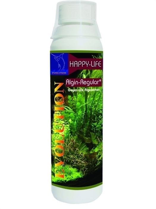 Happy-Life Algin Regular vernichtet  fast alle Algen im Aquarium. Die kurmäßige Anwendung sorgt für eine gründliche und dauerhafte Befreiung. Der Algenwuchs wird sofort gestoppt, bestehende Algen werden aufgelöst und eine Neubesiedelung der Algen wird durch die Vernichtung der Algensporen sicher verhindert. Durch die gleichzeitige Förderung des Pflanzenwachstums werden die Algen zusätzlich verdrängt.