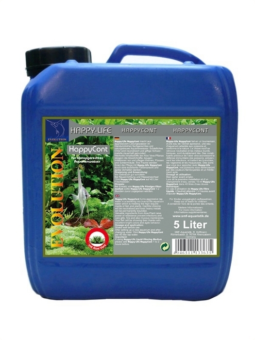 Happy-Life HappyCont macht aus aggressivem Leitungswasser im Handumdrehen fischgerechtes und naturgetreues Aquarienwasser. Schädliches Chlor wird neutralisiert und giftige Schwermetalle dauerhaft gebunden. Wertvolle Inhaltsstoffe der Aloe Vera-Pflanze steigern die Abwehrkräfte, beugen Infektionen vor und pflegen Kiemen, Flossen und Schleimhäute. Ihre Fische werden Ihnen die Pflege mit Happy-Life HappyCont durch eine exzellente Farbenpracht und agiles Verhalten danken.
